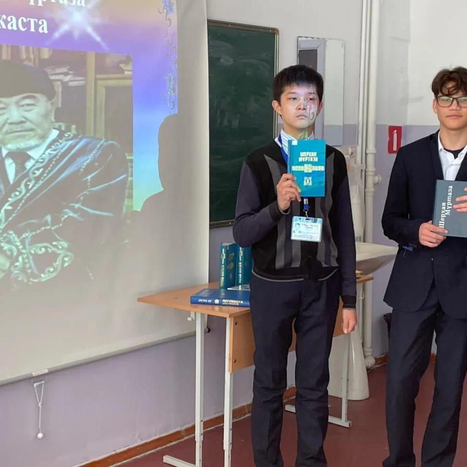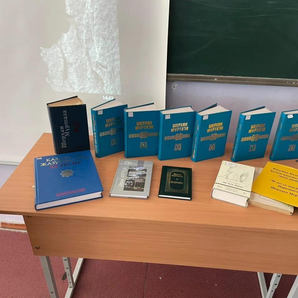 В рамках плана недели казахского языка к 90-летию Ш. Муртазы был организован круглый стол с учащимися 9 - х классов на тему: "Шынның жүзі-Шераға". Учитель казахского языка и литературы Талдыбаева К. Н.обсудила с учениками произведения писателя «Ай мен Айша», «Та же осень», «Аксай и Коксай», «Талисман», «Менбасар», «Столетняя язва», «Хлеб интерната», «Тарамыс волка». Также заведующая библиотекой Н. Фурсина ознакомила учащихся с книжной выставкой, посвященной писателю. На выставке наряду с произведениями писателя были представлены периодические издания о его жизни и творчестве. Для любителей книги сегодняшнее мероприятие было насыщенным и познавательным.