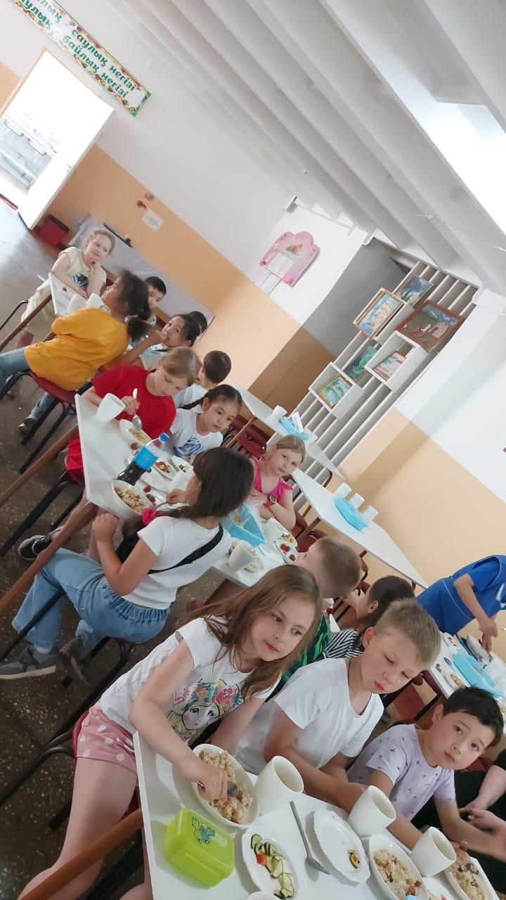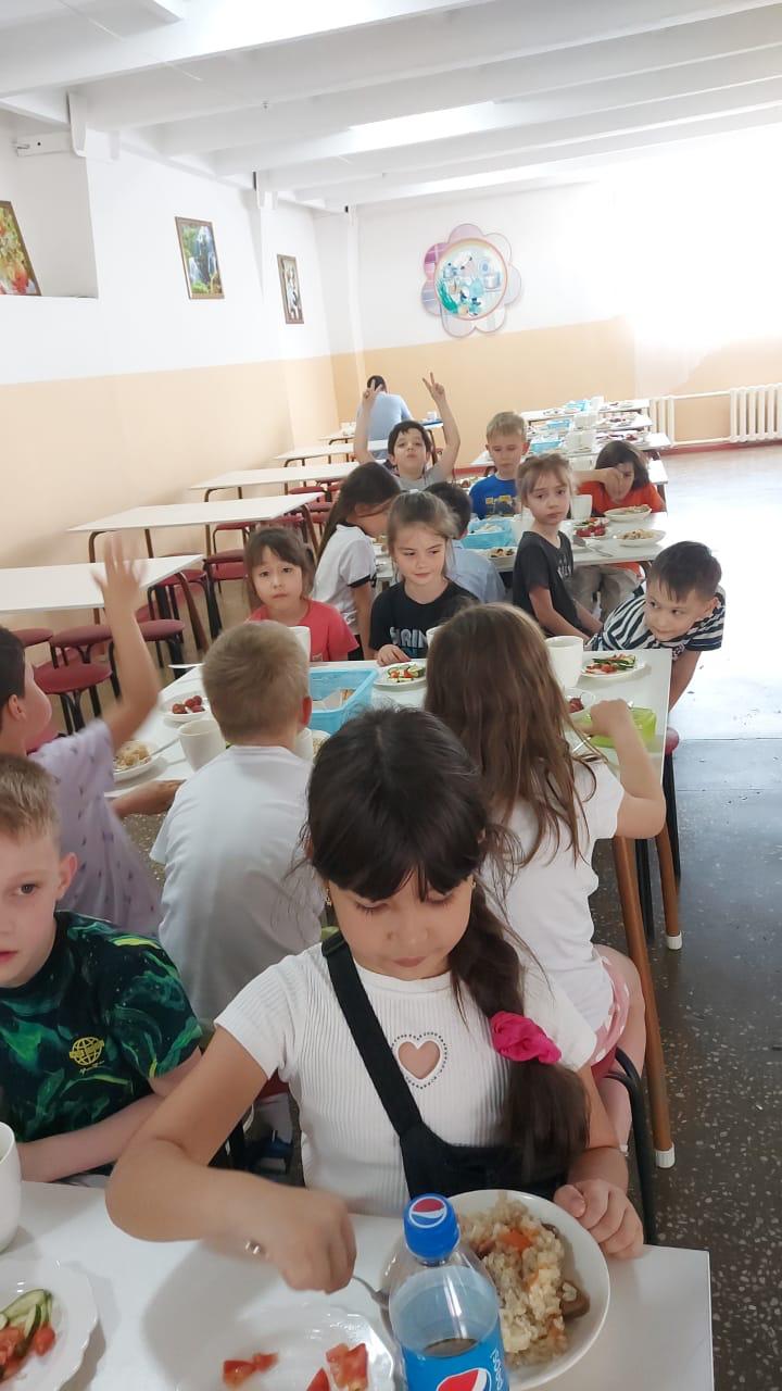 5-ші маусымнан бастап мектеп асханасында «Радуга» жазғы мектеп лагерінің балаларына түскі ас ұйымдастырылды. Мұнда аспаздар мен олардың көмекшілері тынымсыз еңбек етуде. Түскі астан кейін балалар риза болып, жақсы пікірлер қалдырып, дайындалған тағамдарды рахаттана жеді.