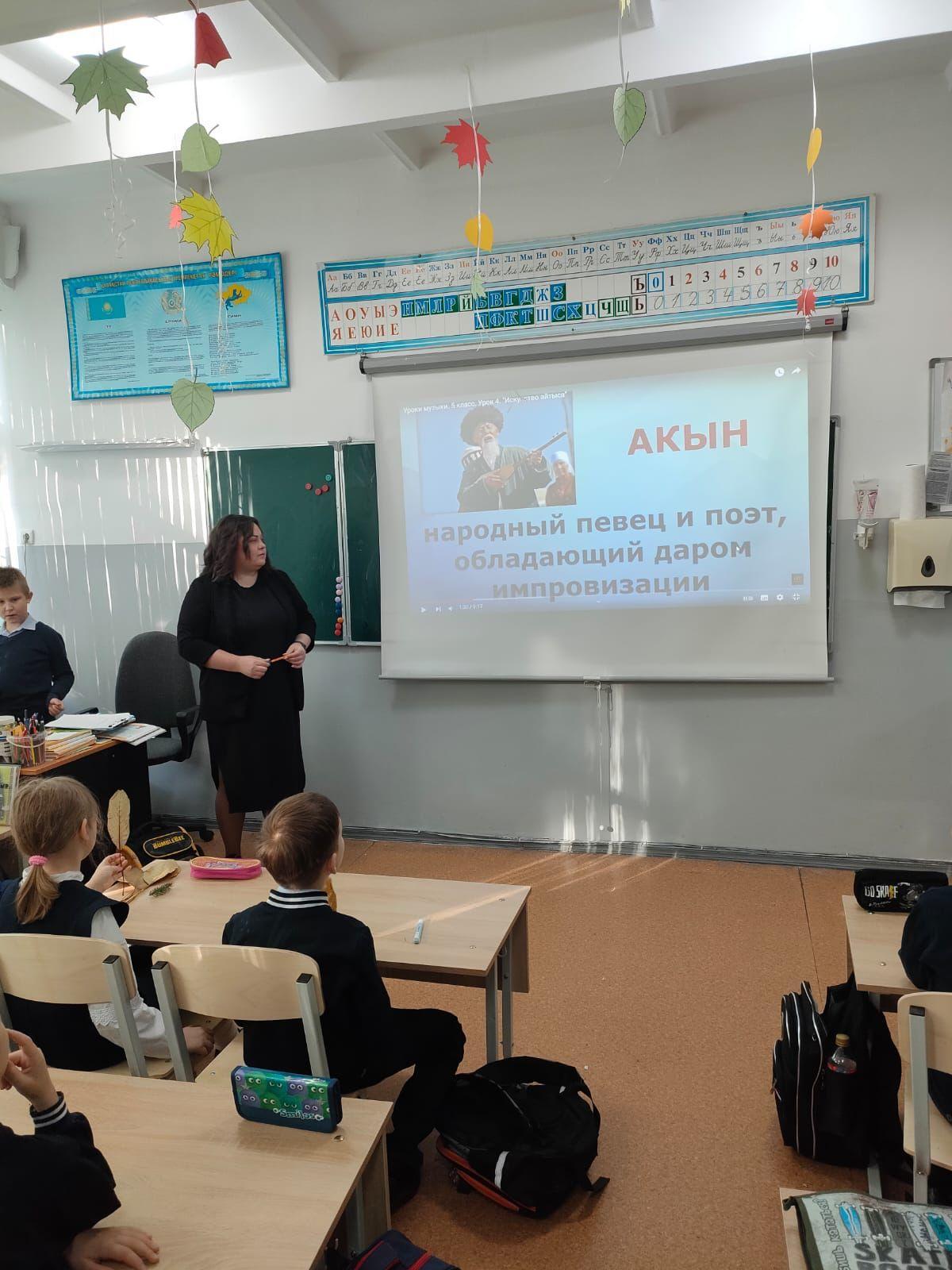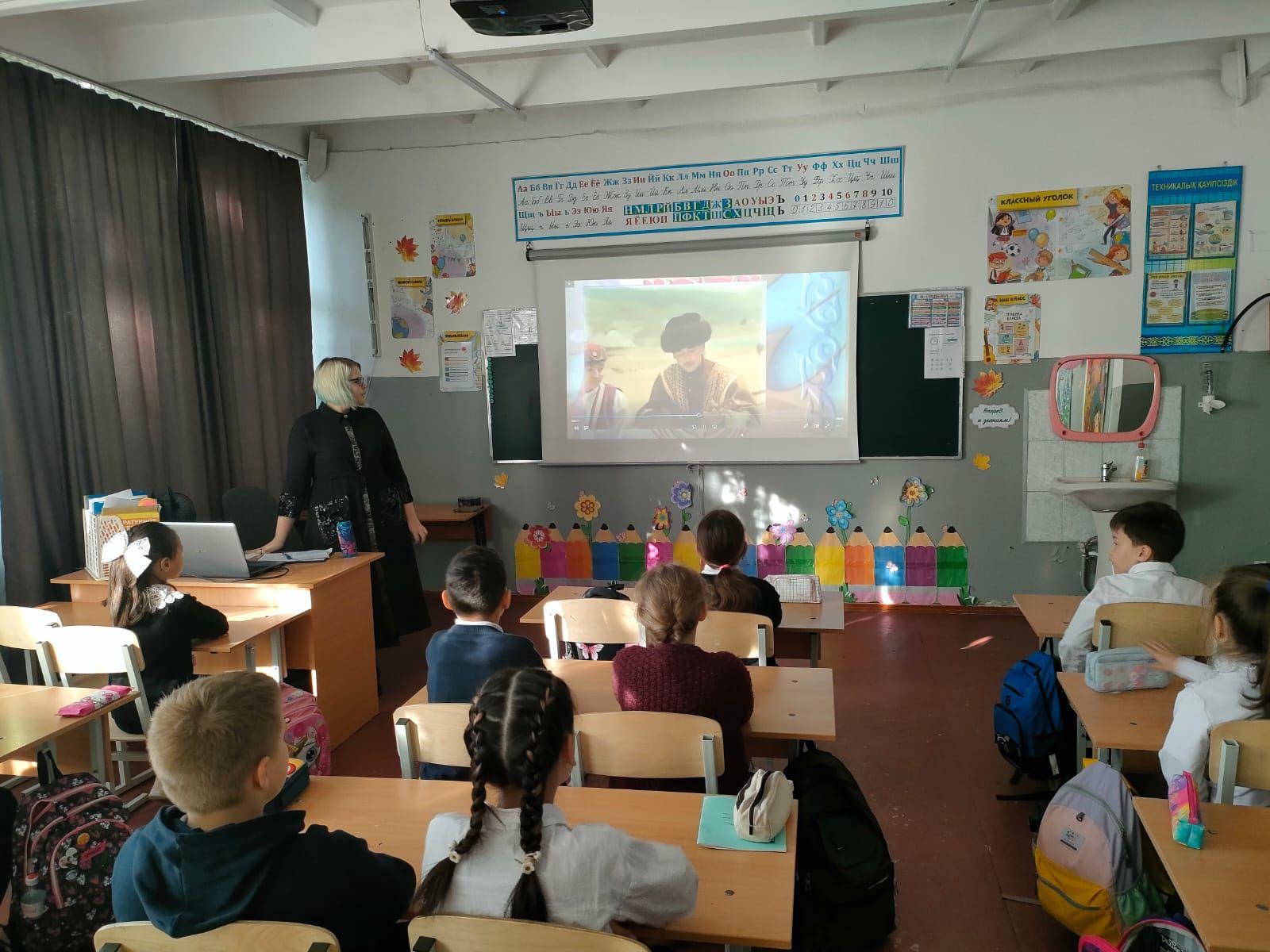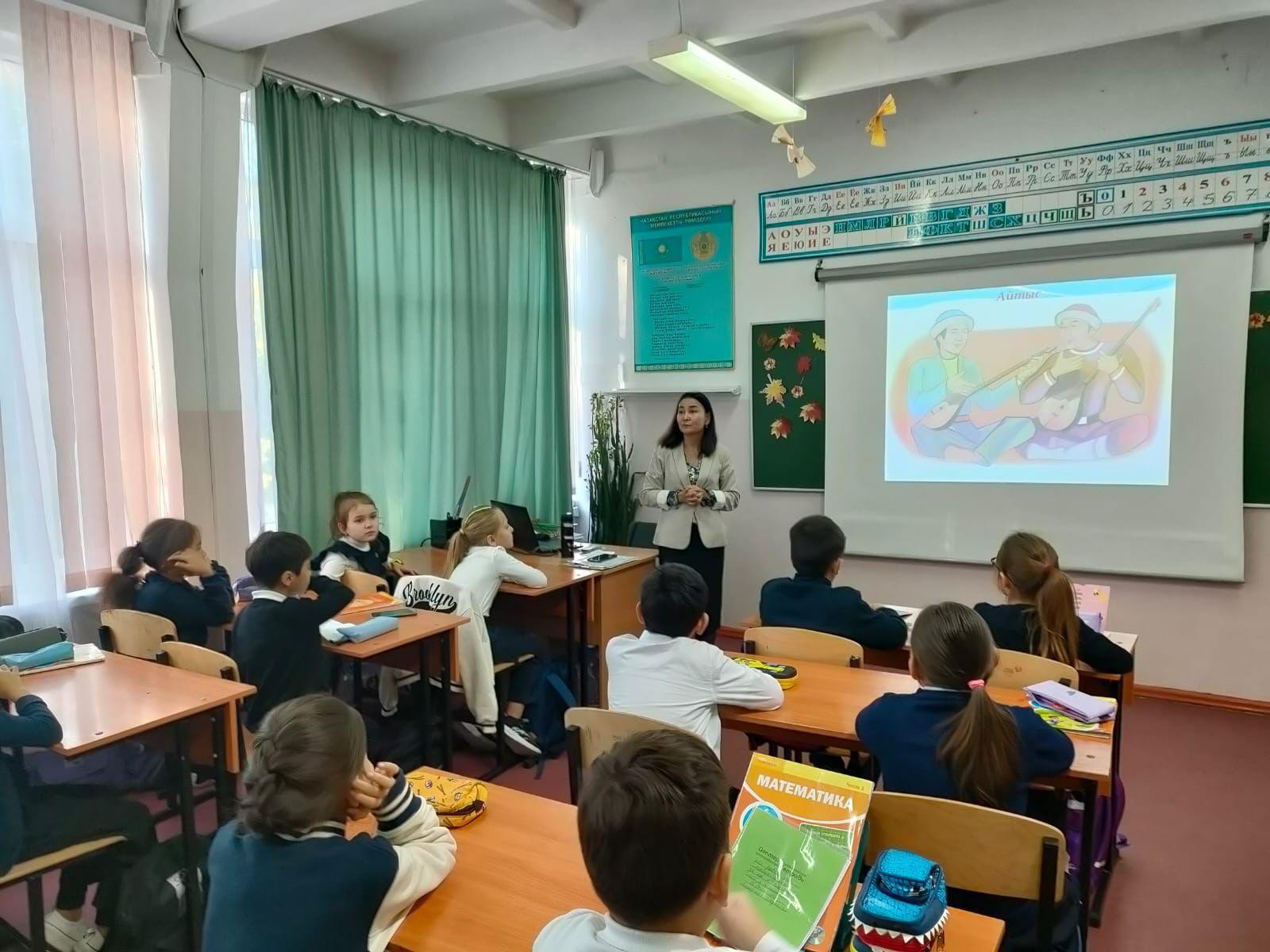 02.10 для школьников начальной школы прошел классный час” Ақындар айтысы”.