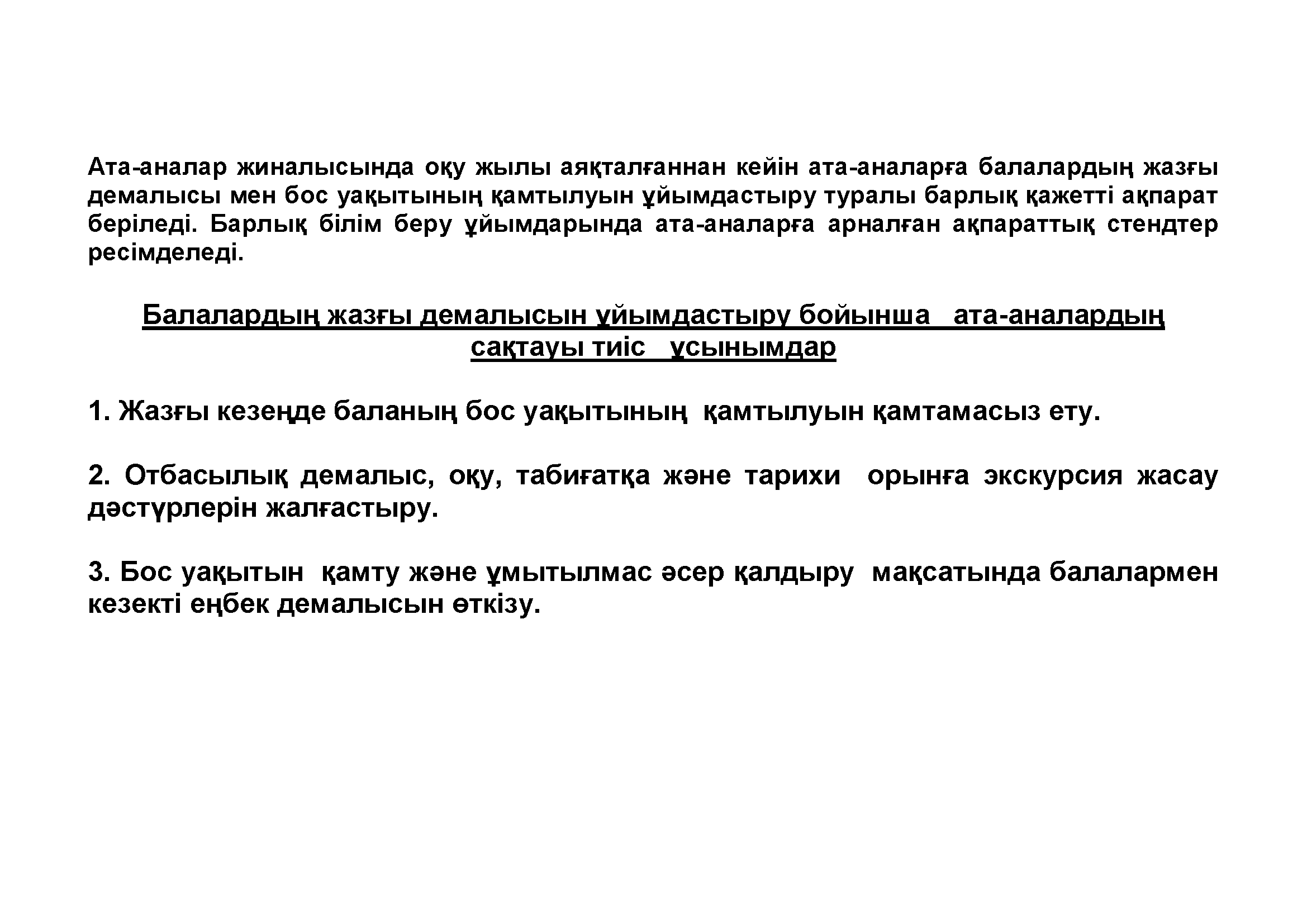 » «ЖАЗҒЫ КАНИКУЛ – ДЕНСАУЛЫҚ ПЕН ЕСТЕЛІКТЕР КЕПІЛІ» ТҰЖЫРЫМДАМАСЫ