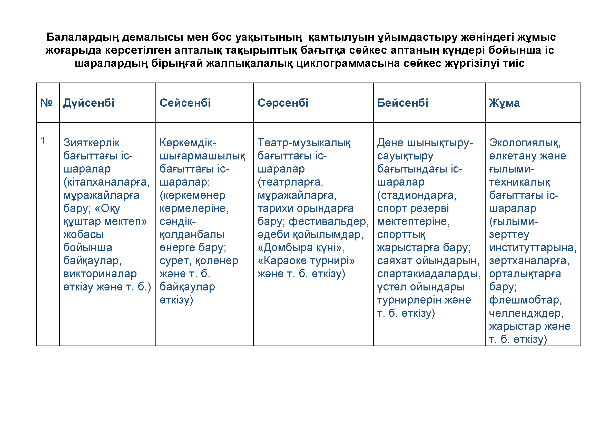 «ЖАЗҒЫ КАНИКУЛ – ДЕНСАУЛЫҚ ПЕН ЕСТЕЛІКТЕР КЕПІЛІ» ТҰЖЫРЫМДАМАСЫ