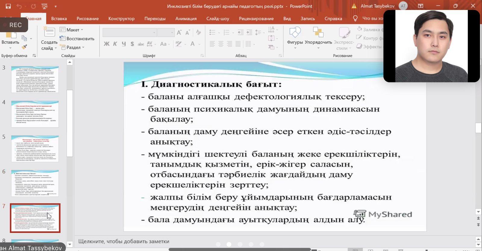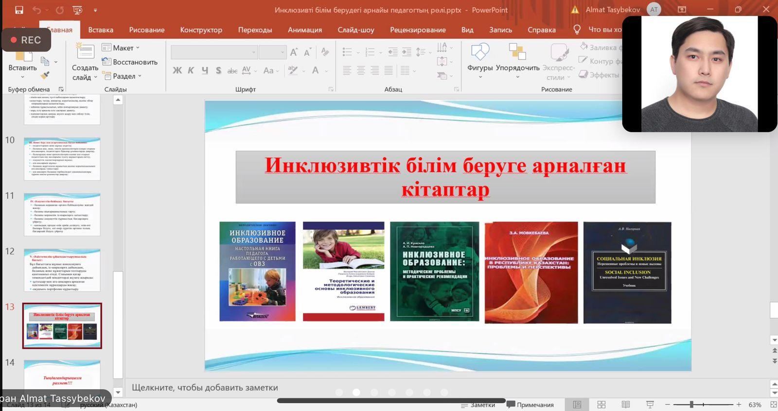 08.12.2021 жыл «Біз әртүрліміз, бірақ біз теңбіз» инклюзивті білім беру апталығы аясында арнайы педагогы Алмат Есенаманович «Инклюзивті білім берудегі арнайы педагогтың рөлі» атты баяндама қорғап шықты.