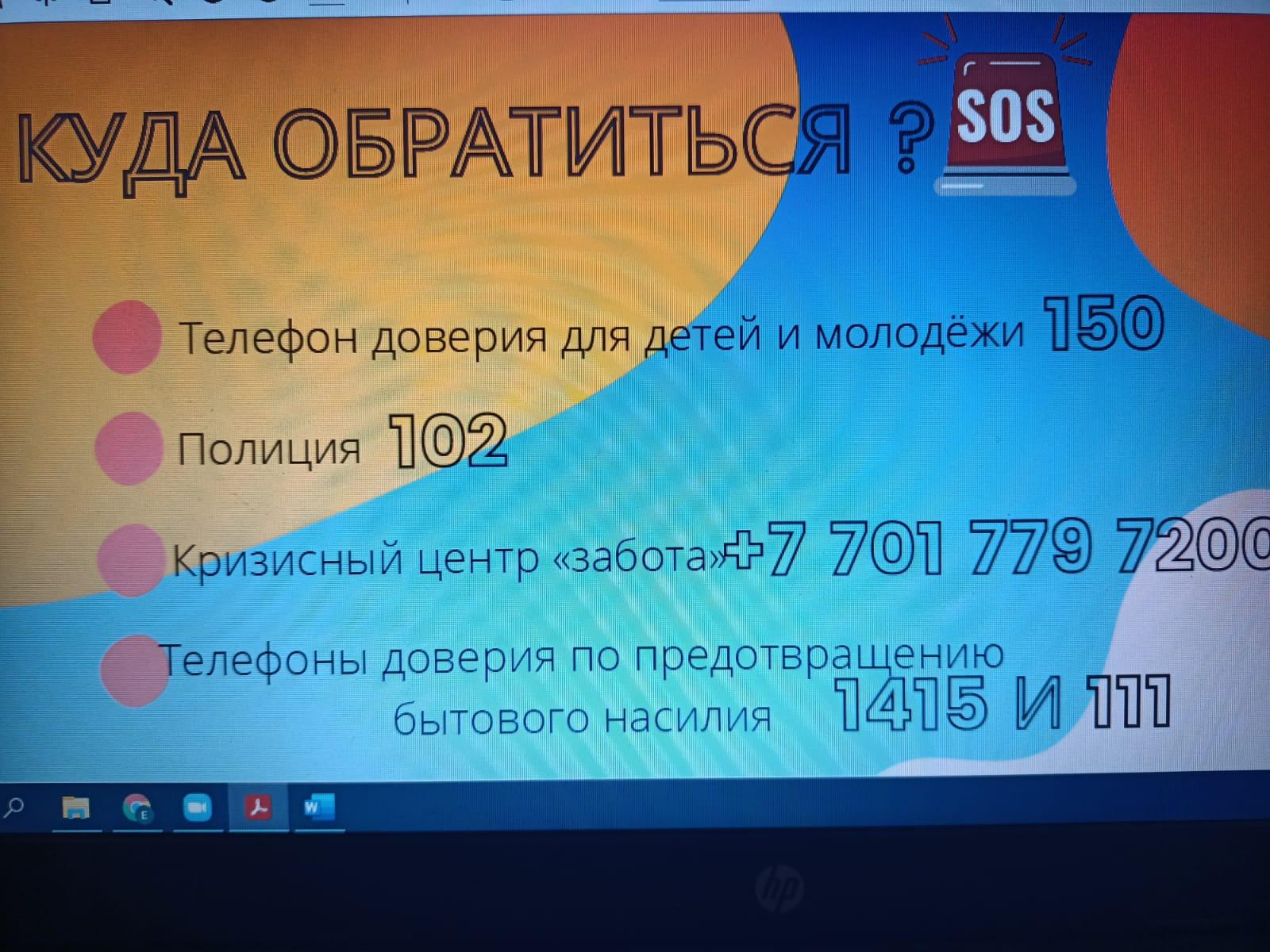 15.12.2021г. в рамках утвержденных договорённостей Управления образования г.Алматы и ОО «Равный-Равному плюс» в лице ДЦ TeenergizerQZ и тренерами молодежной сети Y-peer в ШГ №30 в формате факультатива провели онлайн тренинг на тему "Насилие" с учениками 8, 9, 10х классов.