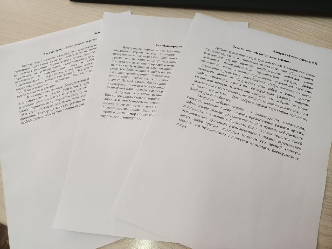 В рамках Республиканской декады «Самопознание:педагогика Любви и Творчества» с учащимися 9 «Б» класса был проведен конкурс-эссе на тему «Благородное сердце». Благородное сердце – это великодушие, забота о других. Если каждый из нас постарается быть благородным сердцем, то наш мир станет совсем другим, в нем не останется места злобе, черствости, равнодушию.