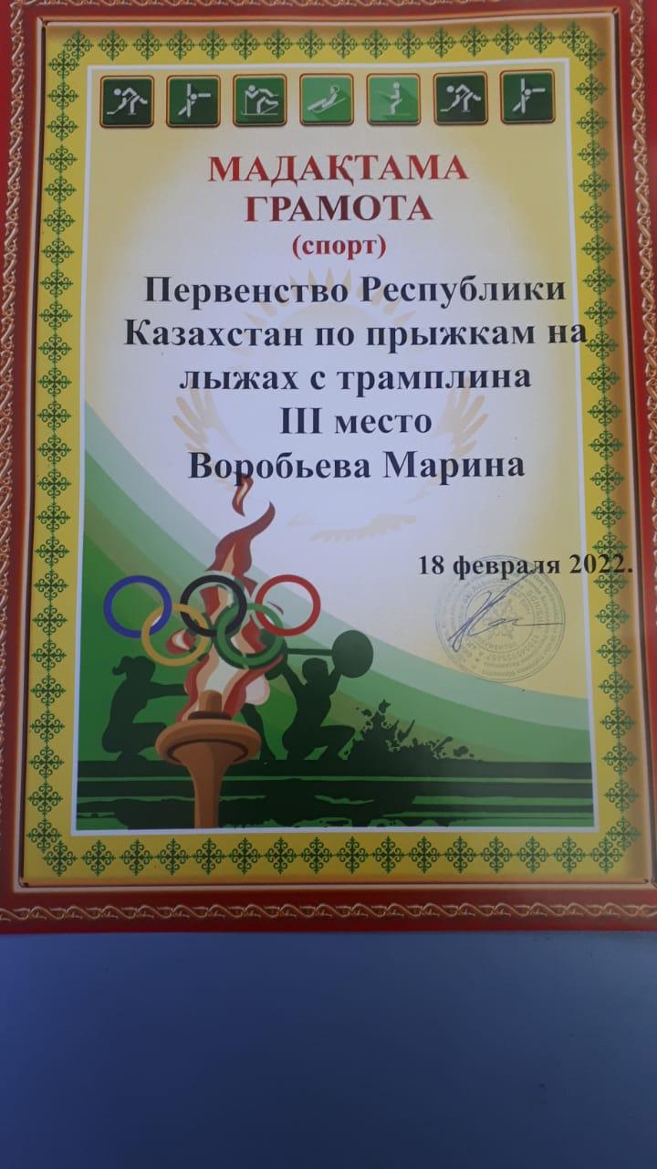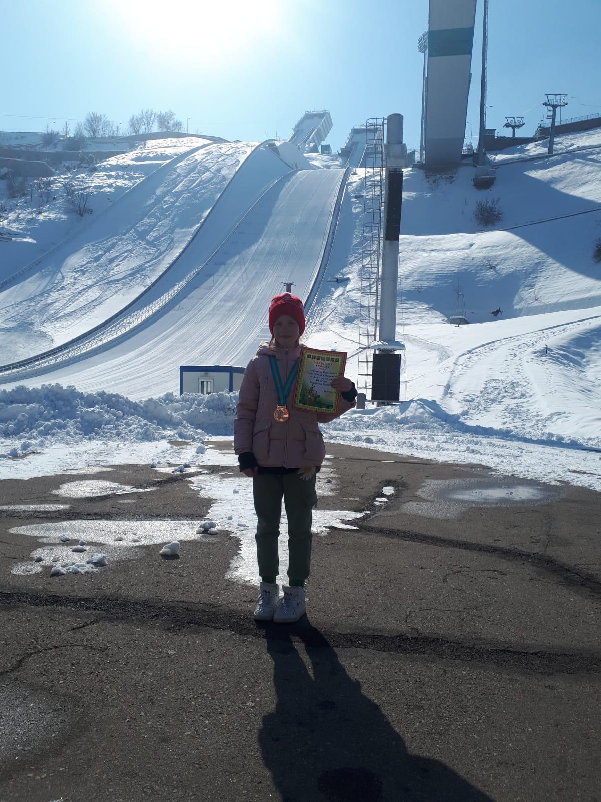 Ученица 4 «Б» класса Воробьева Марина заняла 3 место в Первенстве Республики Казахстан по прыжкам на лыжах с трамплина.