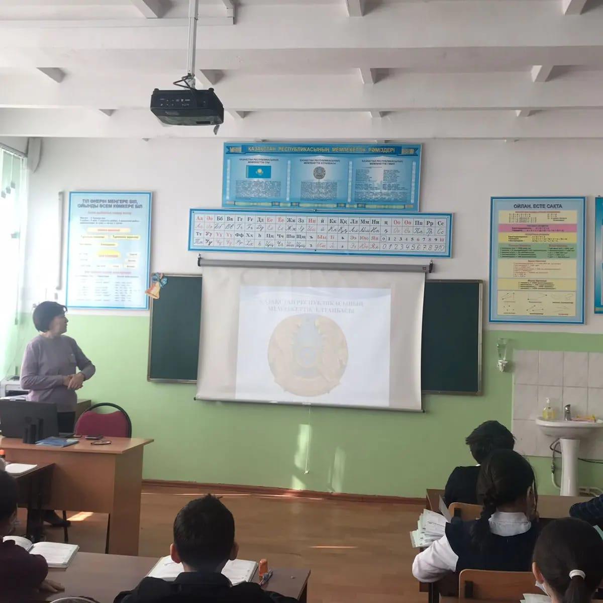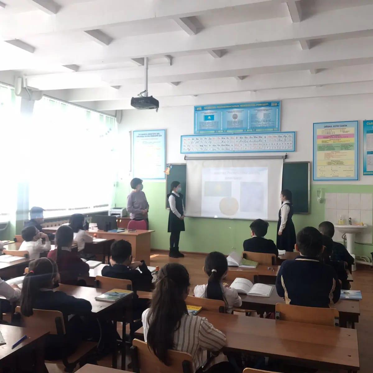 Д.Снегин атындағы №30 мектеп гимназиясының 4"А" сыныбында Мемлекеттік рәміздерді насихаттау барысында оқушыларды Отан сүйгіштікке, адамгершілікке, Отанына, халқына адал қызмет етуге, Туын, Елтаңбасын, Әнұранын қастерлеп, құрметтеуге халқының тегін тарихын білуге тәрбиелеу мақсатында "Мемлекеттік рәміздер - ұлт мақтанышы" тақырыбында тәрбие сағаты өткізілді.