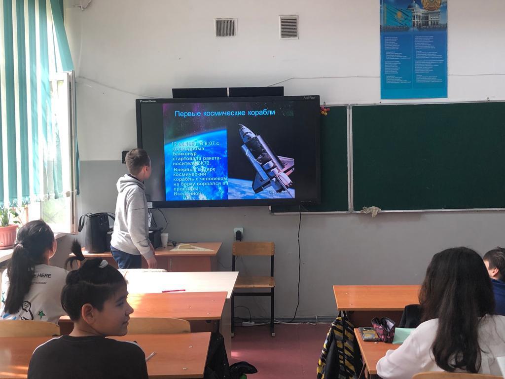 16.04.2022г. в 6 «Б» классе по направлению «Воспитание нового казахстанского патриотизма и гражданственности, правовое воспитание» прошел внеклассный урок виртуальная экскурсия, посвящённая Дню космонавтики на тему «Через тернии к звёздам»