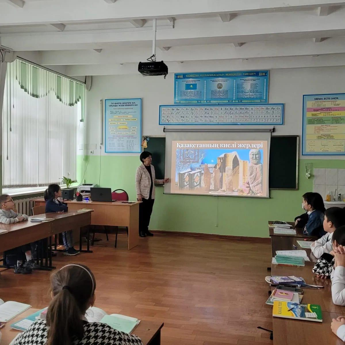 Д.Снегин атындағы №30 мектеп гимназиясының 4"А" сыныбында тарих пен мәдениетке, адамның рухани дамуына және оның туған жеріне деген сүйіспеншілігін арттыру мақсатында “Қазақстанның киелі жерлеріне виртуальды саяхат” тақырыбында тәрбие сағаты өткізілді.