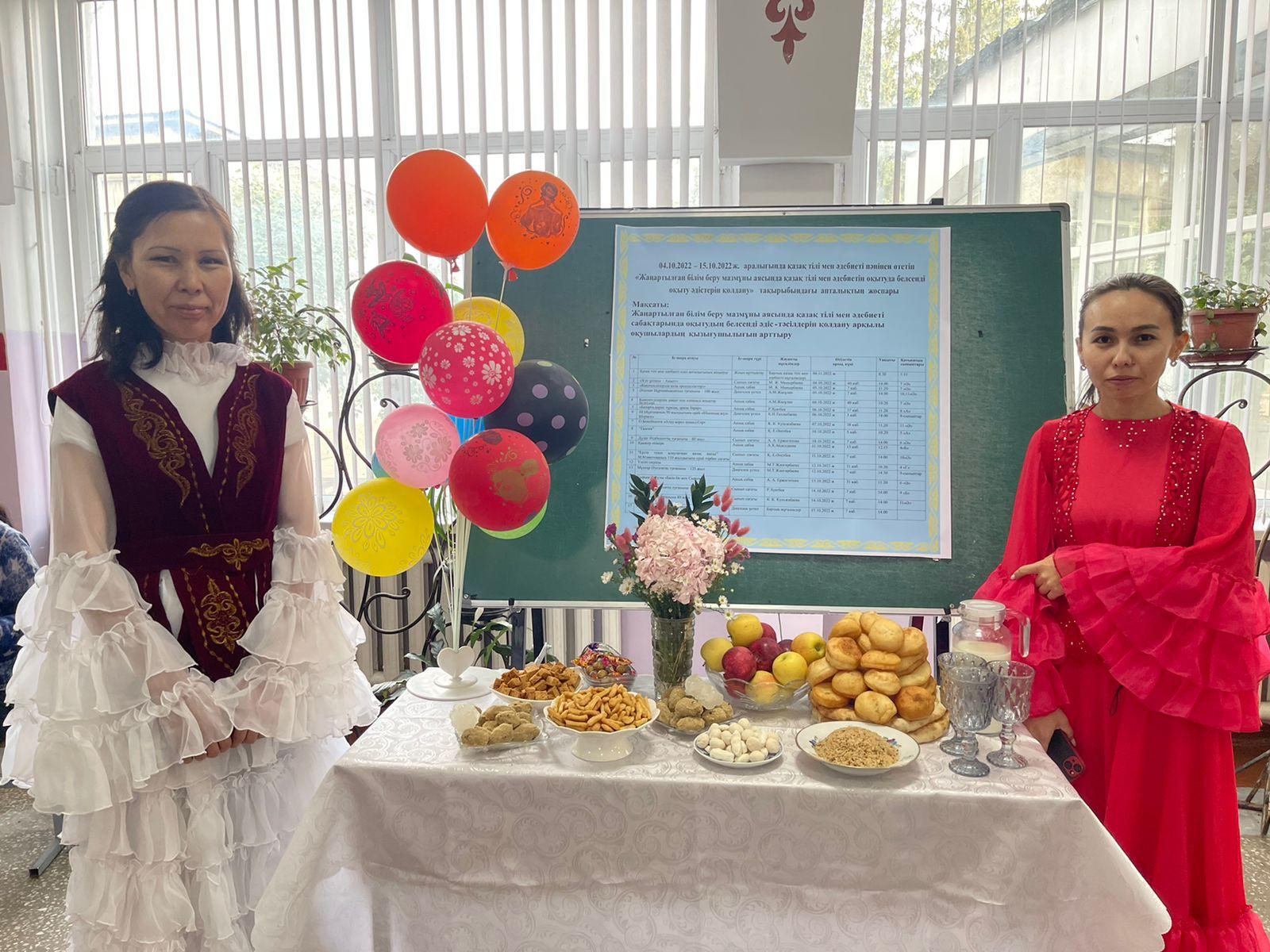 04.10.2022 ж. - 15.10.2022 ж. аралығында қазақ тілі мен әдебиеті пәндері бойынша “Жаңартылған білім беру мазмұны аясында қазақ тілі мен әдебиетін оқытуда белсенді оқыту әдістерін қолдану” тақырыбында апталық жоспарланып, 4 қазан күні ашылу салтанаты өтті.