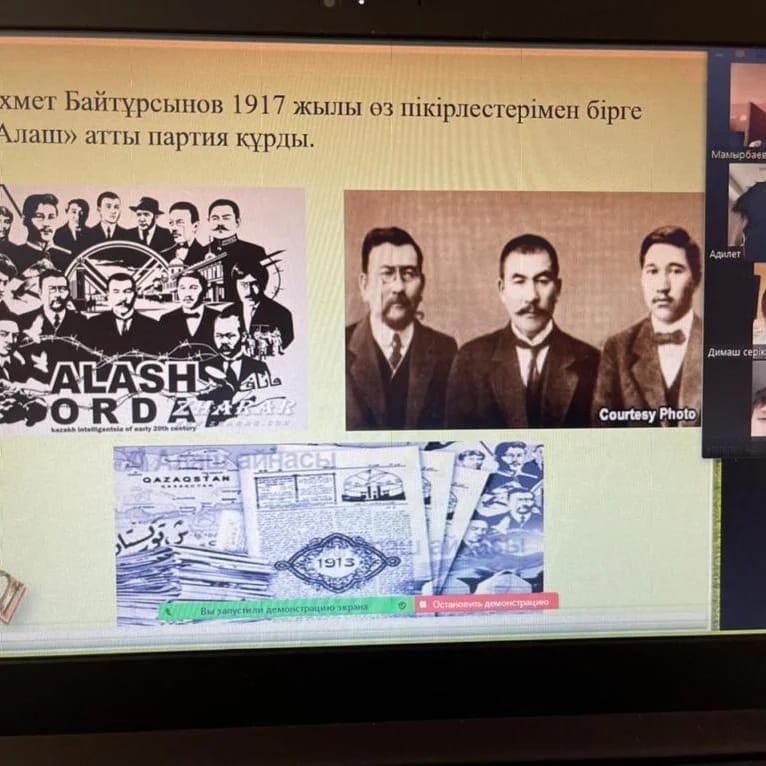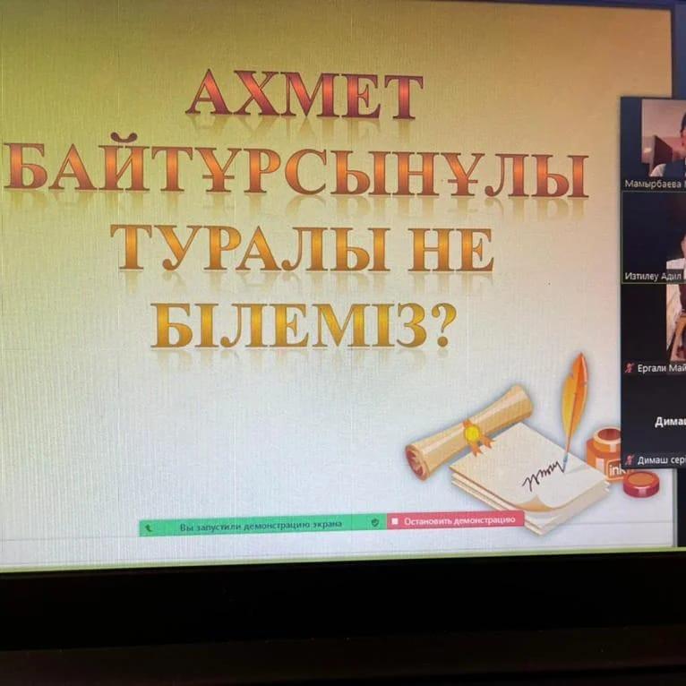 с 7 "Ә" классом провела внеклассный воспитательный час “Ұлт ұстазы - Ахмет”