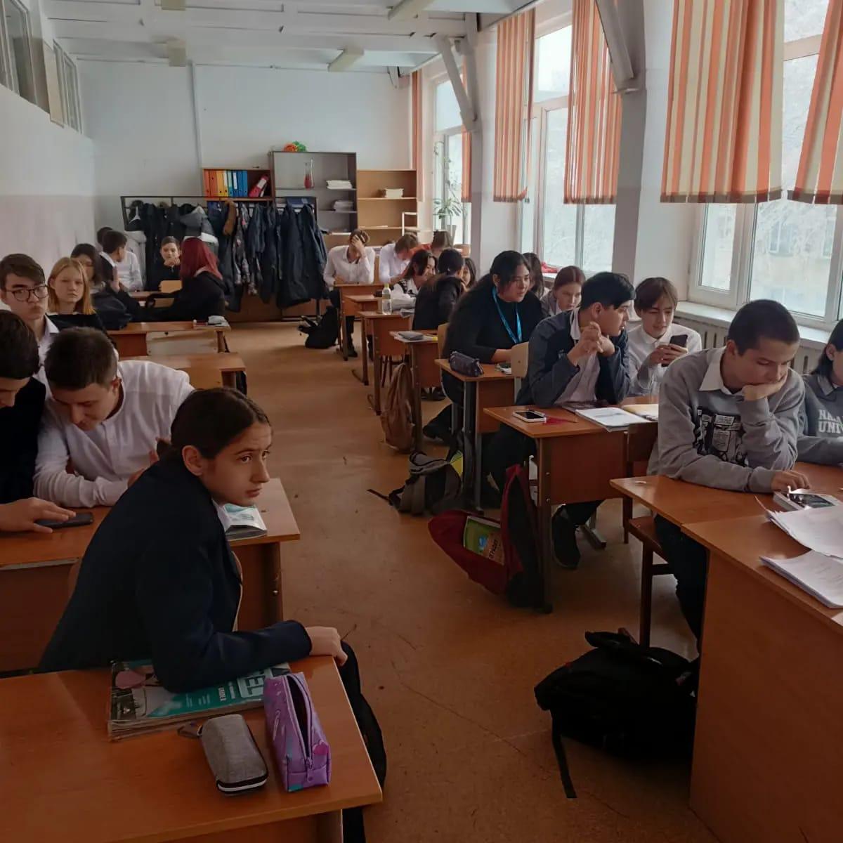 17.11.2022г. Классный руководитель 8 "В" класса Мусабаева Г.Е. совместно с педагогом-психологом школы Елубаевой Ж.Е. провели беседу на тему "Буллинг".