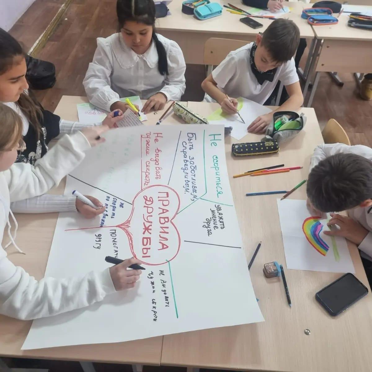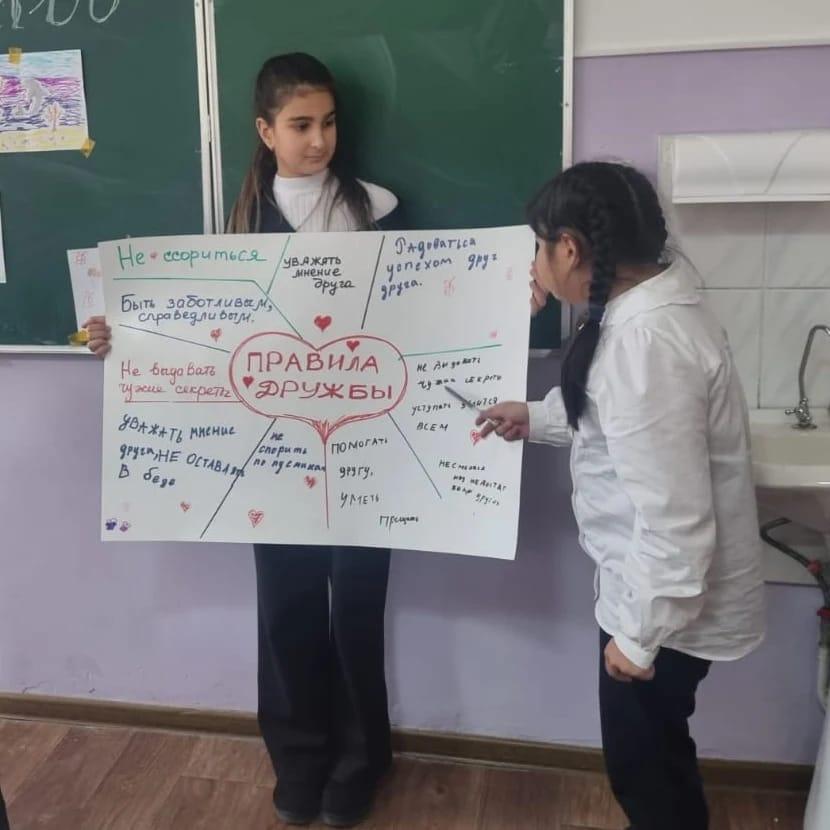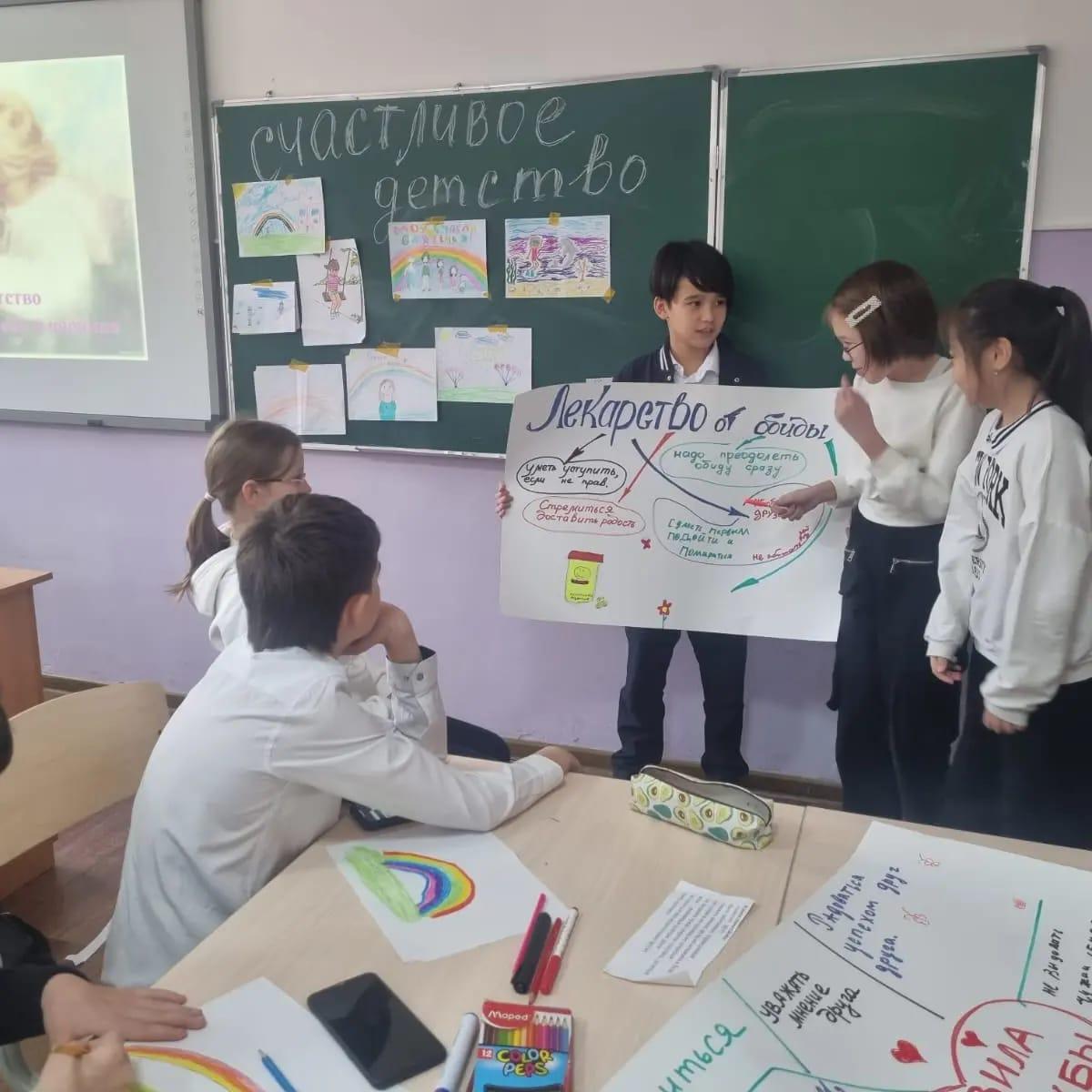 Классный руководитель Калимбетова Д.М. провела классный час с учениками 5 "Б" класса на тему "Детство без жестокости и насилия". Цель: повысить информированность общественности, включая взрослых и детей, о проблеме насилия и жестокого обращения в отношении детей, её последствиях для ребёнка и общества.