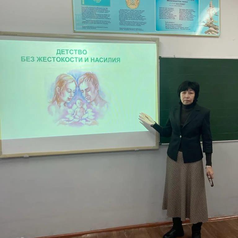 Классный руководитель Киялова Ж.И. провела классный час с учениками 8 "А" класса на тему "Детство без жестокости и насилия". Цель: повысить информированность общественности, включая взрослых и детей, о проблеме насилия и жестокого обращения в отношении детей, её последствиях для ребёнка и общества.