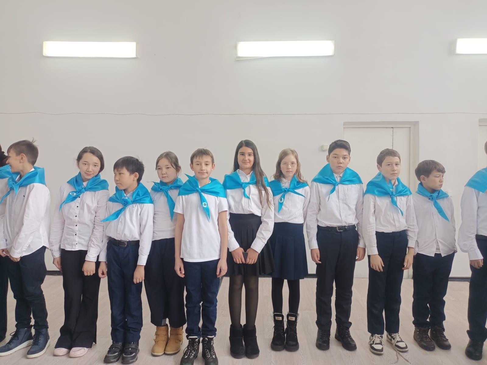 22.12.2022г. прошел торжественный прием детей и подростков в единые республиканские организации "Жас қыран" и "Жас Ұлан". Цель: воспитание подрастающего поколения знающего и сознательного поколения, неравнодушного к любви к Родине, к истории и будущему независимого Казахстана, в котором преобладают ответственные качества. Учащиеся 11 класса школы приняли участие в церемонии вручения галстуков учащимся, принятым в организации самоуправления "Жас Ұлан" и "Жас Қыран".