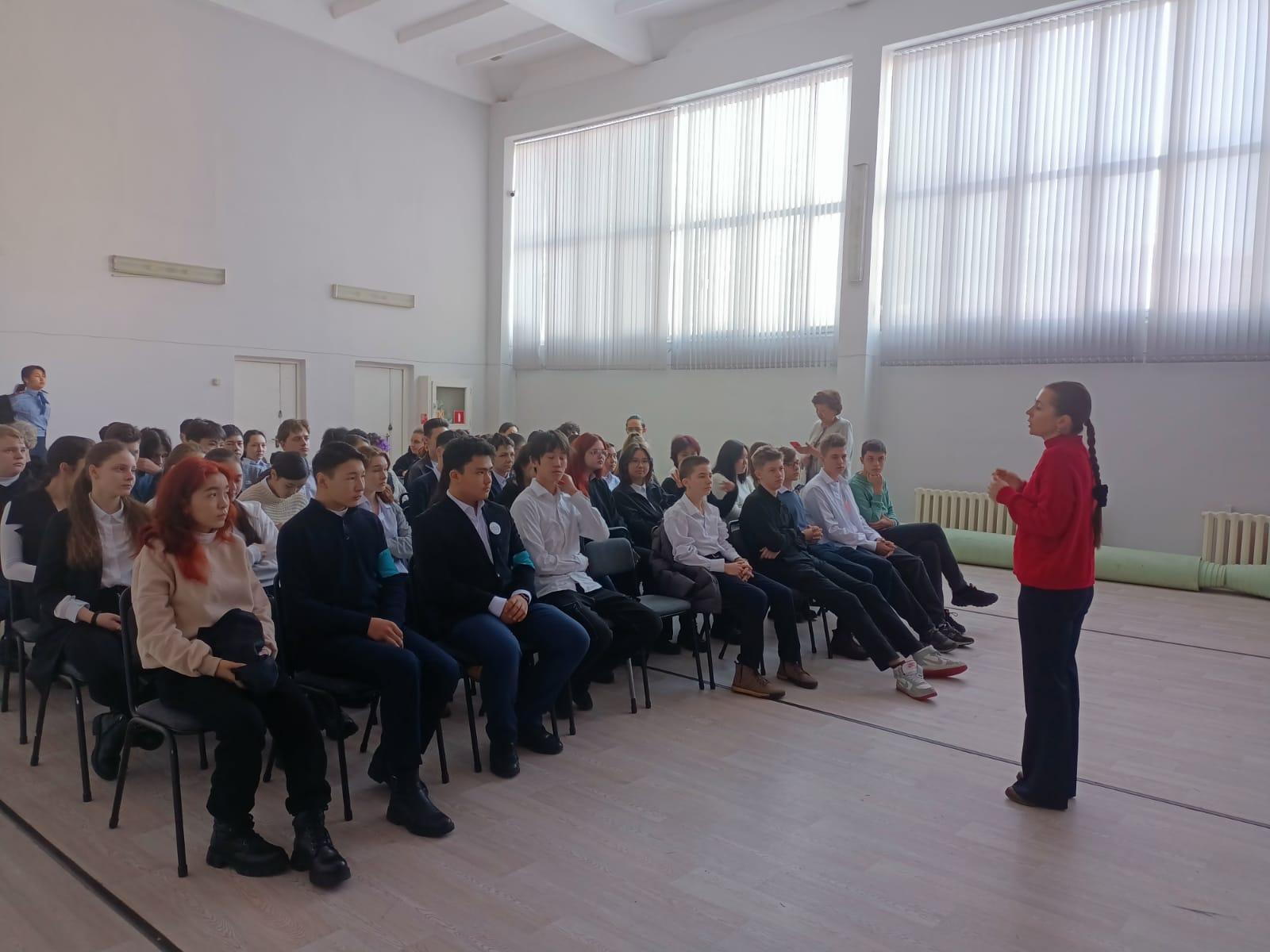 Мектебіміздің 9-10 сынып оқушыларына нарколог А. А. Трубникова "Жасөспірімдер арасындағы темекі шегудің зияны және оның алдын алу шаралары" туралы түсіндіру жұмыстарын жүргізді.