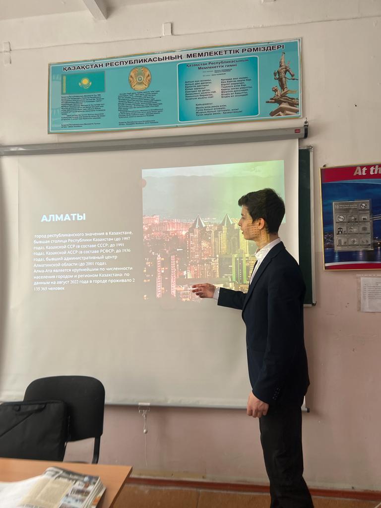 Классный руководитель Мусабаева Г.Е. с учениками 8 «В» класса провела внеклассное мероприятие (выставка видеороликов) на тему «Мой любимый город Алматы». Цель урока воспитание гражданственности, патриотизма через изучение фактов истории родного края.