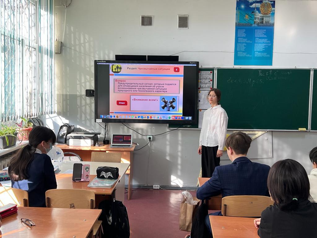 14.03.2023 ж. ҚР Дүниежүзілік Азаматтық қорғаныс күні аясында 7А-сынып оқушылармен "Қауіпсіздік және Біз" тақырыбында ойын-викторина өткізілді.