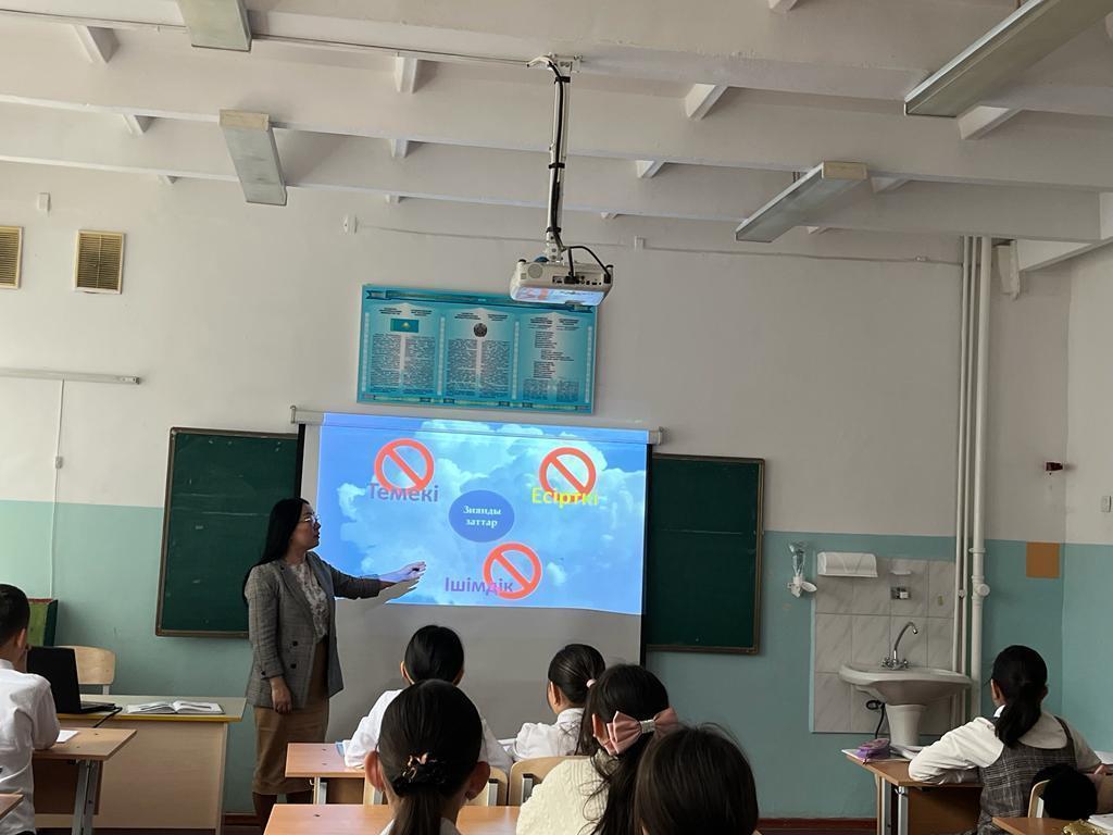 30.03.2023ж. сынып жетекші Кенжалиева С.Ж. 5Ә сыныбымен "Нашарқорлықты алдын алу жолы, темекі мен арақ-шараптың зияны" атты тақырыбында сынып сағаты өтті.