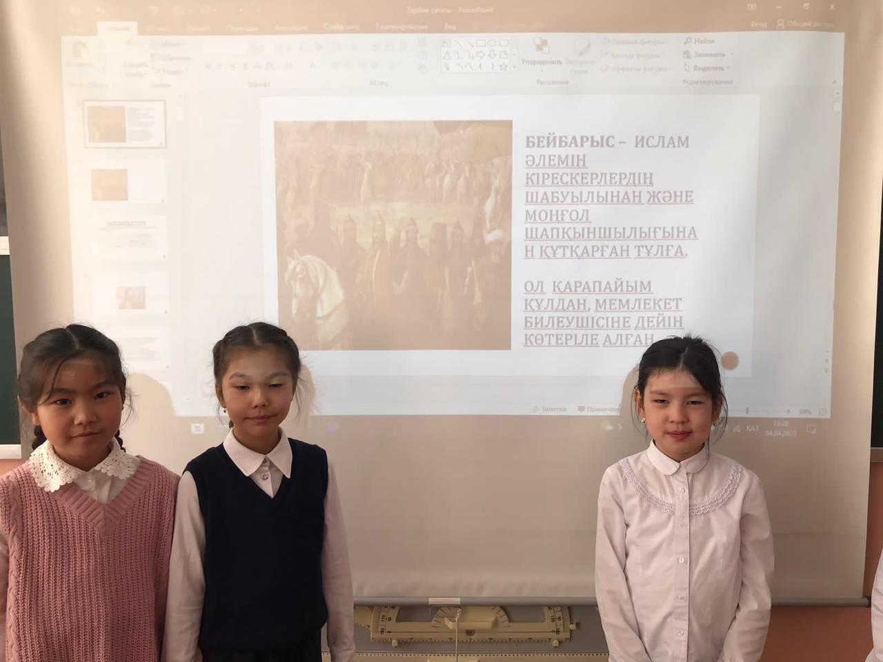 04.04.2023ж. 1-4 сынып оқушылары арасында Сұлтан Бейбарыстың 800 жылдығына орай сынып сағаттары өткізілді. Іс-шара барысында оқушылар көрнекті қолбасшының өмірбаяны және ерліктерімен танысты.