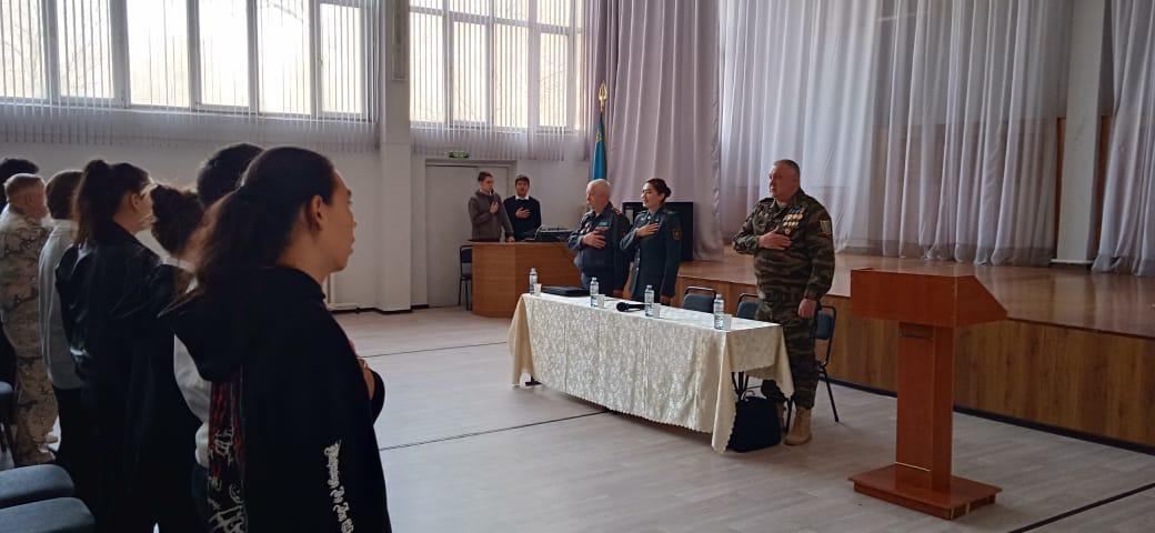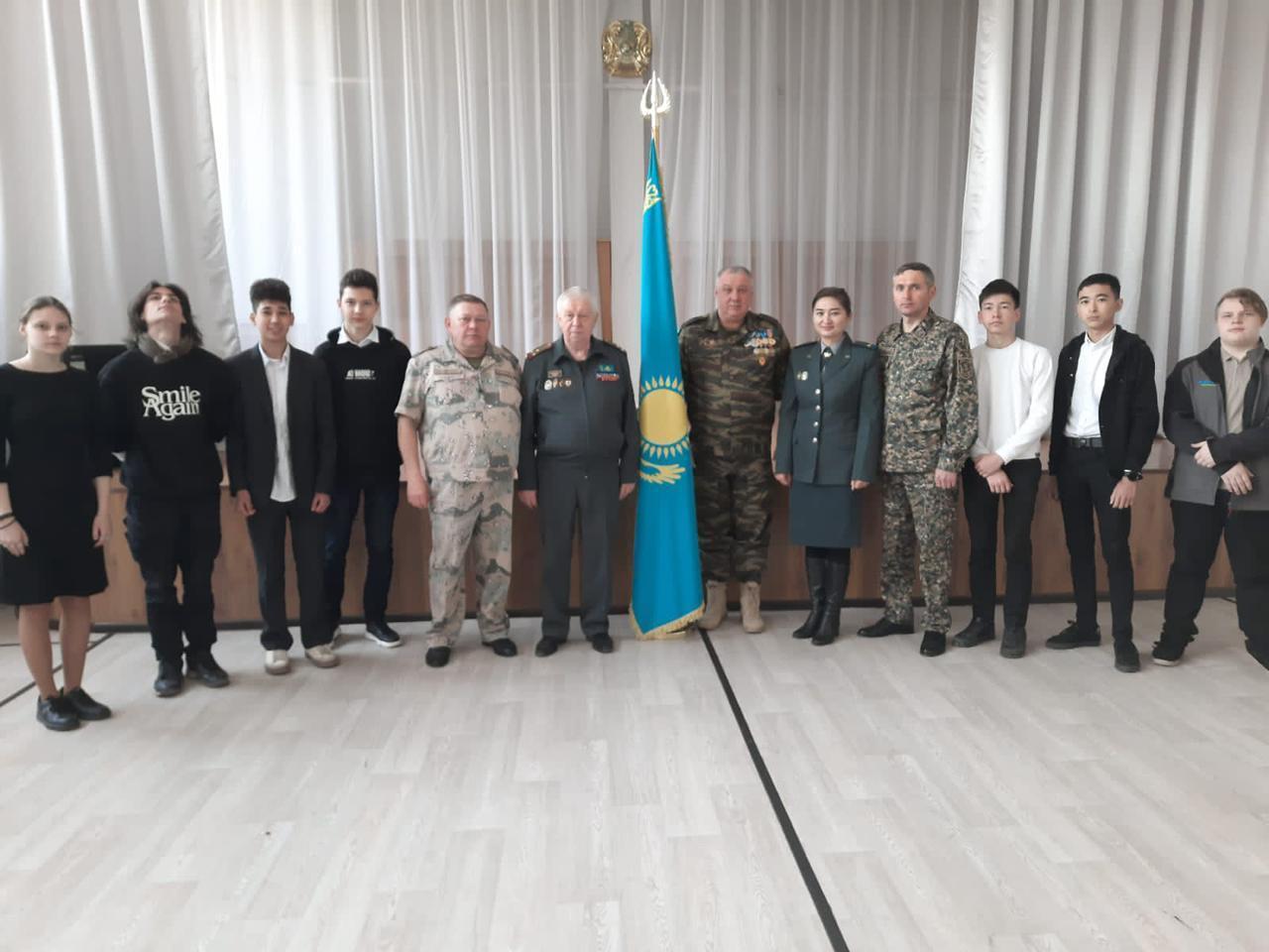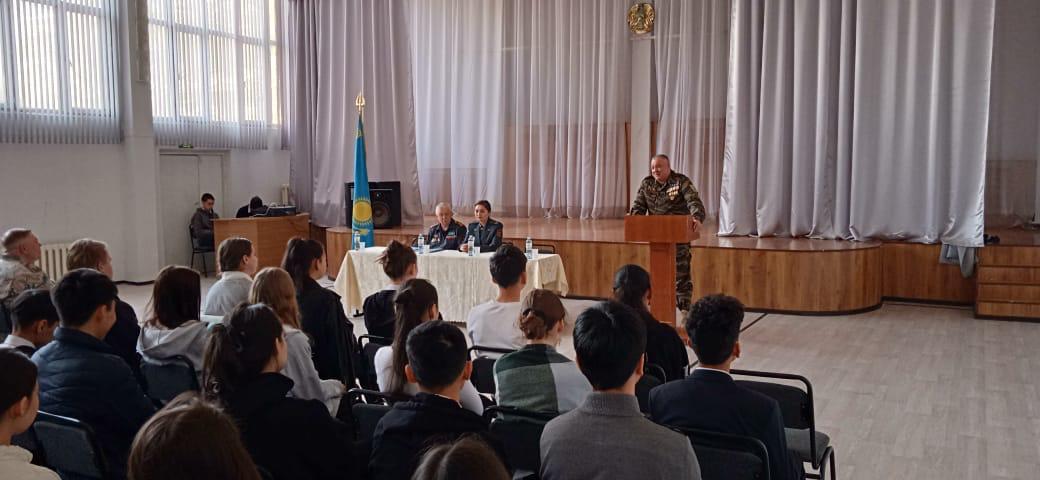 В целях поднятия имиджа Вооруженных сил Республики Казахстан, престижа воинской службы, военно-патриотического воспитания молодежи представителями Управления по делам обороны Медеуского района совместно с Общественным объединением "Ветеранов боевых действий Казахстана" проведен "с учениками 10 класса проведён "Урок мужества ".