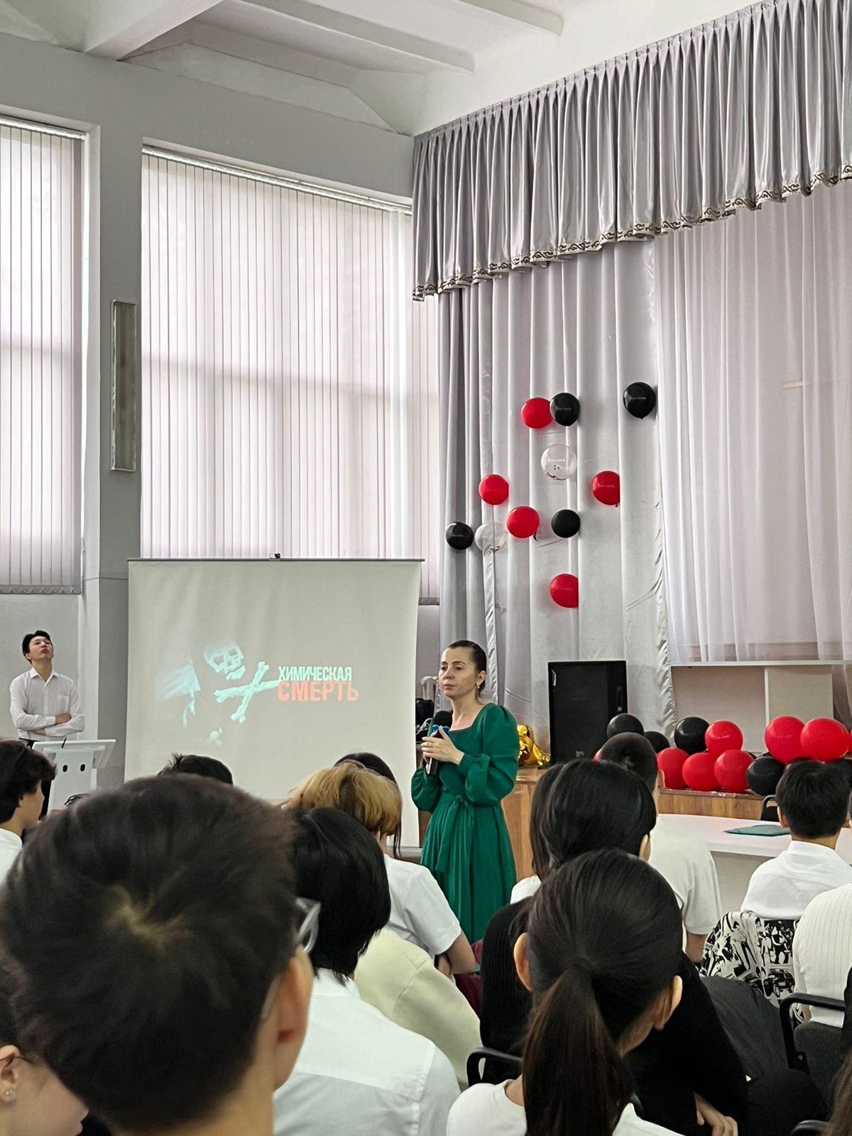 25 апреля 2024 года в КГУ ШГ № 30 им. Д. Снегина с врачом психиатром-наркологом Цента психического здоровья города Алматы Трубниковой Анной Александровной была проведена информационно-разъяснительная работа по линии профилактики наркомании среди 9-10 классов.