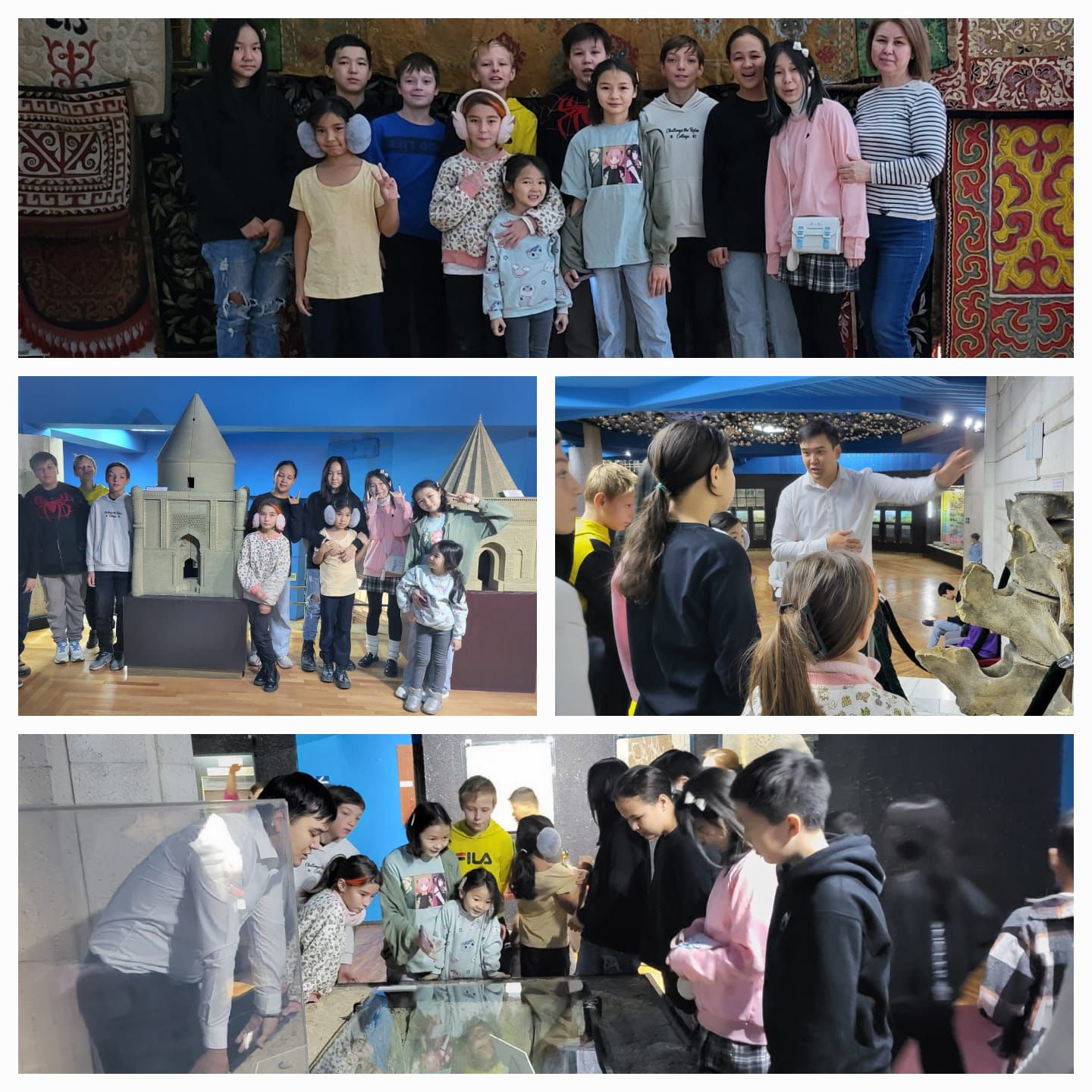 На осенних каникулах учащиеся 6 “Б” класса с большим интересом посетили Центральный Государственный музей РК. За один день они узнали всю историю Казахстана, познакомились с ценными экспонатами музея. Такие мероприятия не только расширяют кругозор ребят, но и делают их дружными и сплоченными.