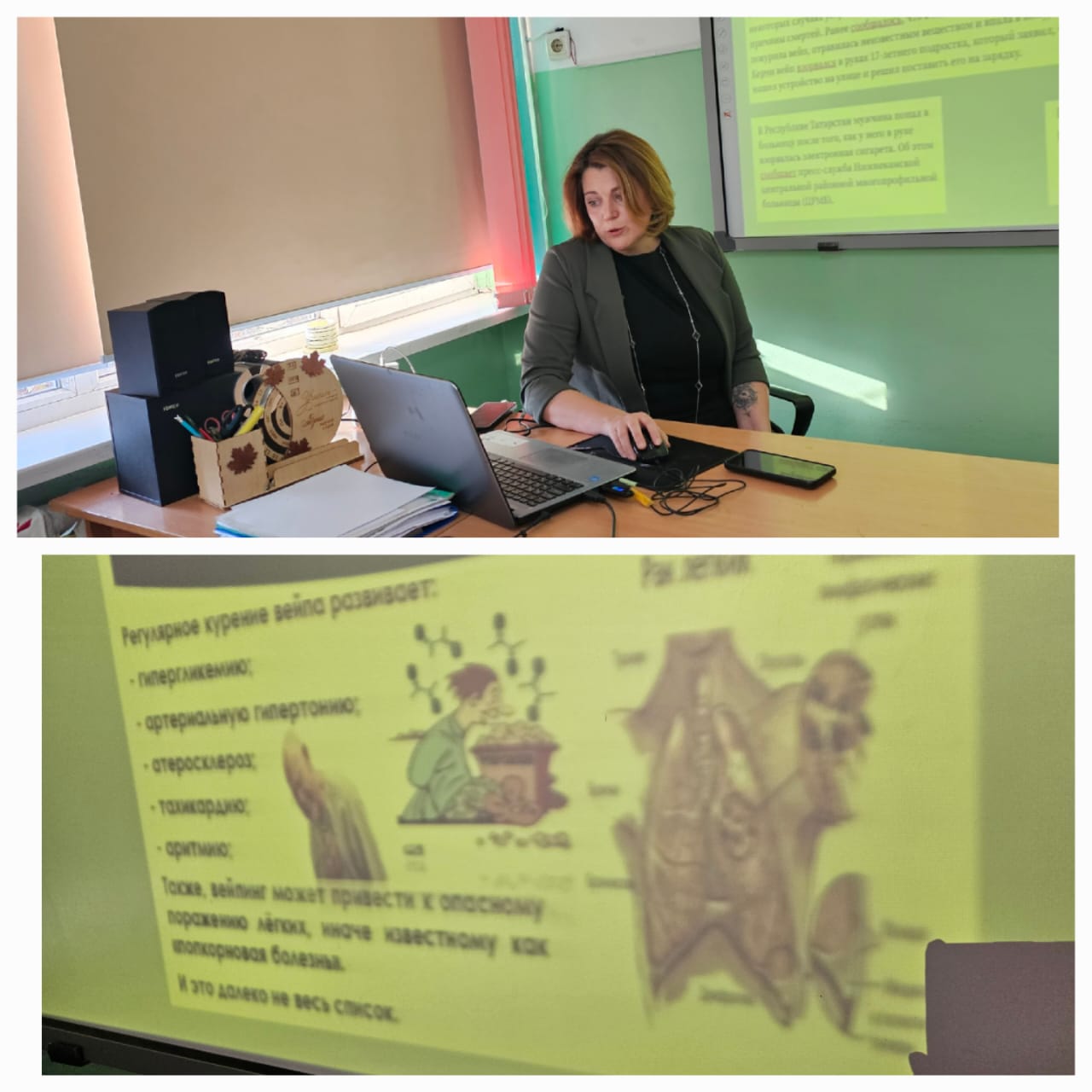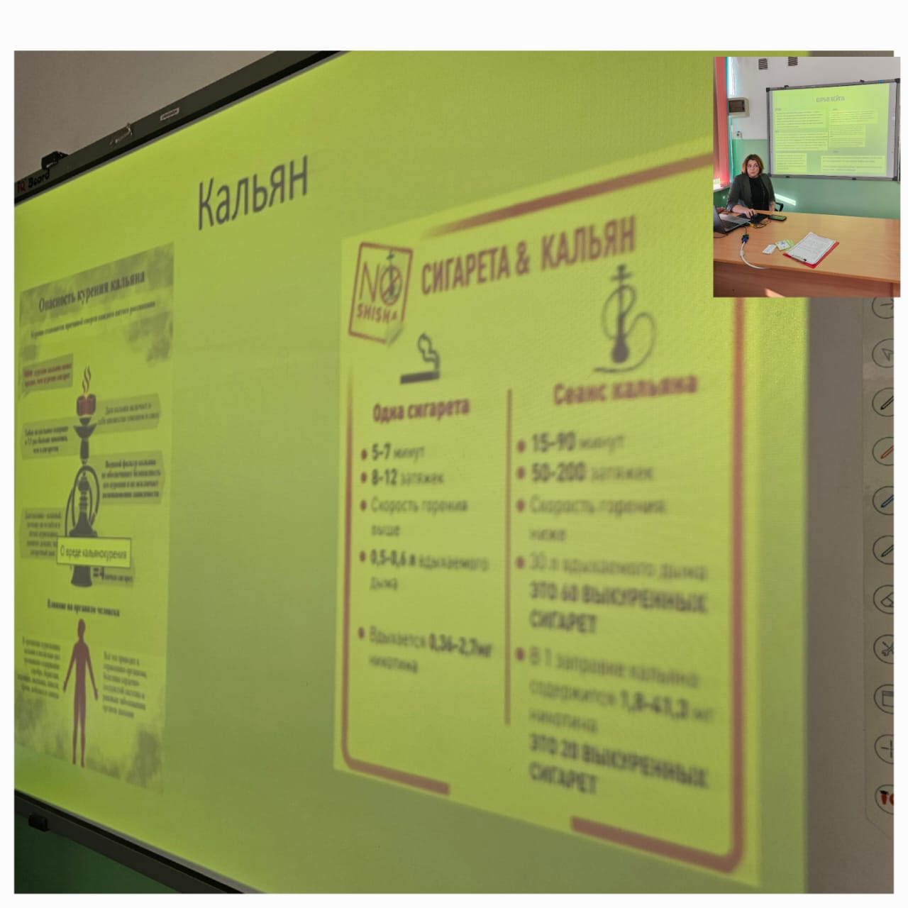 С целью привлечения внимания обучающихся к проблеме табачной зависимости и её последствиям 25 ноября в 7 "Б" классе проведена интерактивная беседа совместно с Гулиной Натальей Сергеевной, врачом ультра-звуковой диагностики, родителем 7 "Б"класса.