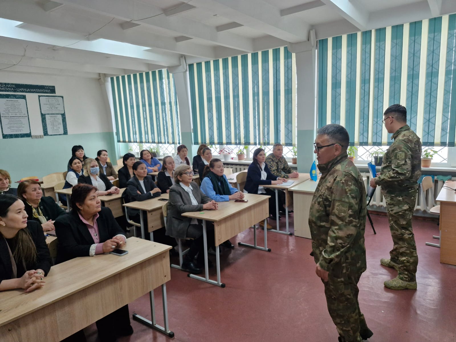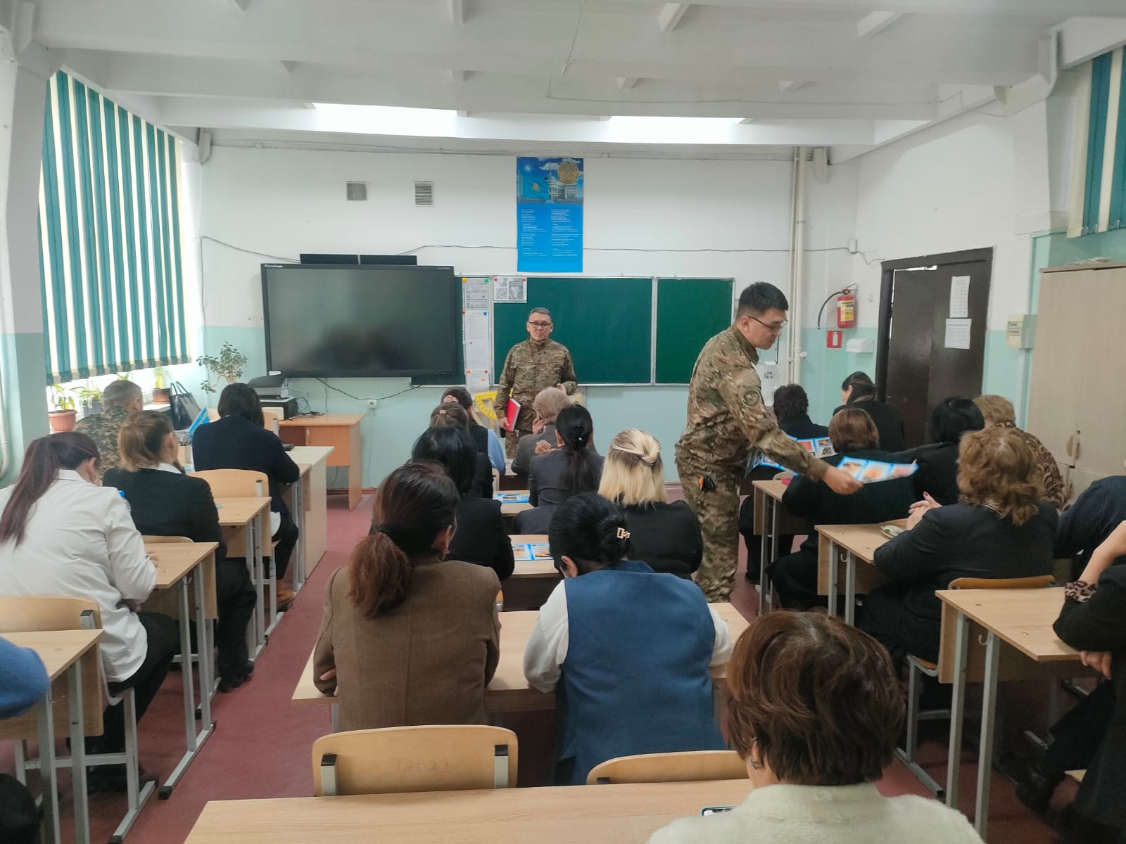 27.02.2025 г. Главный специалист УЧС Медеуского района ДЧС города Алматы подполковник гражданской защиты Дулат Айдын Бозтайлакович и главный специалист УЧС Медеуского района ДЧС города Алматы капитан гражданской защиты Ешмаганбетов Еламан Жамбылович провели инструктаж с учителями школы-гимназии про соблюдение правил пожарной безопсности.