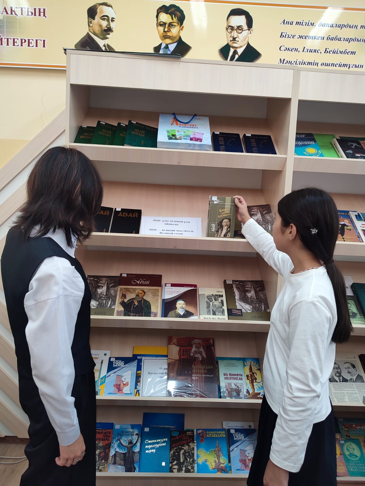 12 сентября библиотекой школы-гимназии № 30 им. Д. Снегина была оформлена выставка на тему: "Абай - ұлы даланың ұлы ойшылы. Абай — великий мыслитель Великой степи".