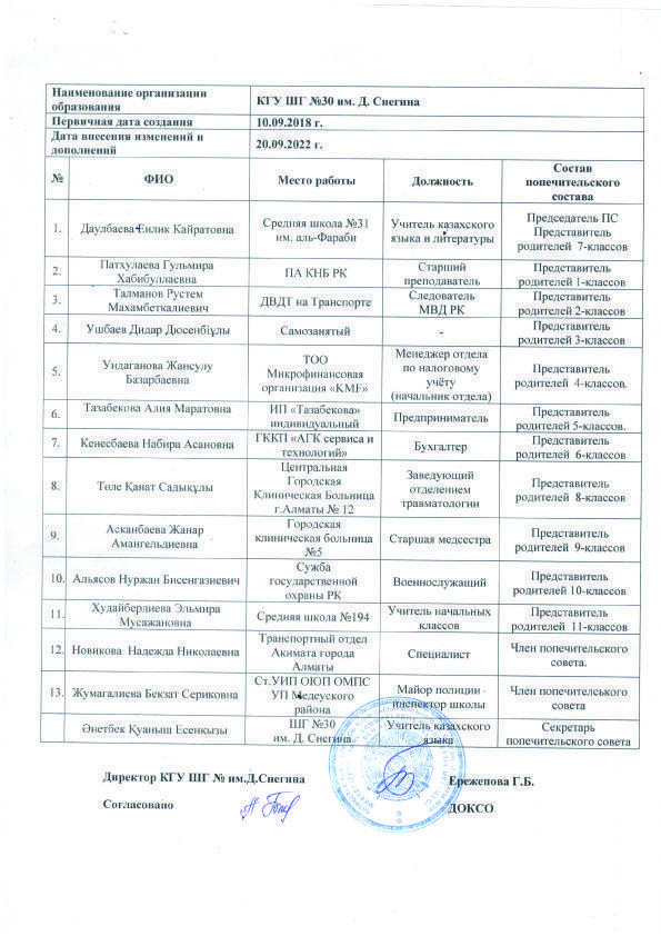Список попечительского совета \ Қамқоршылық кеңесінің тізімі