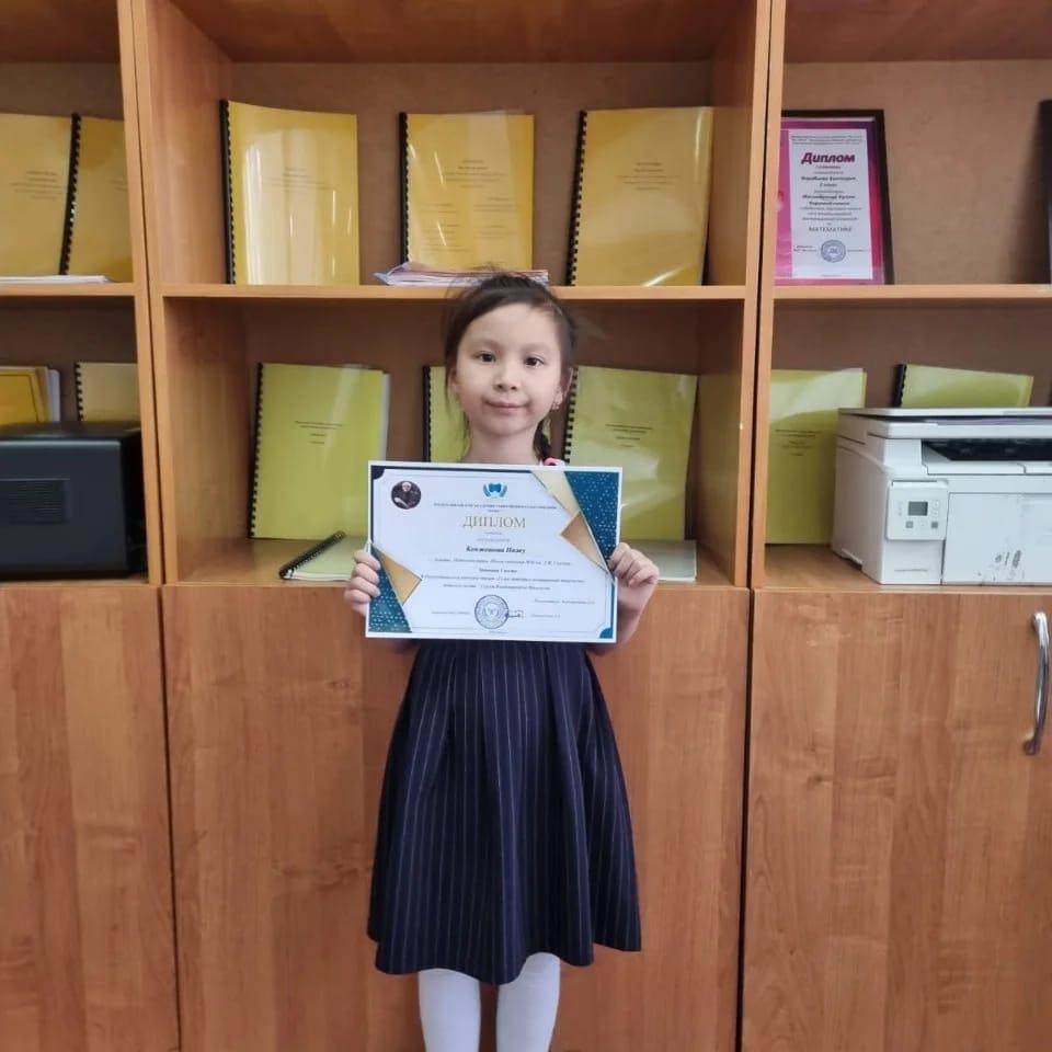 По итогам конкурса 24.03.2022 года ученица 5а класса Нурпеис Каракат и ученица 1 а класса Кенжешова Инжу заняли призовые 1 места.